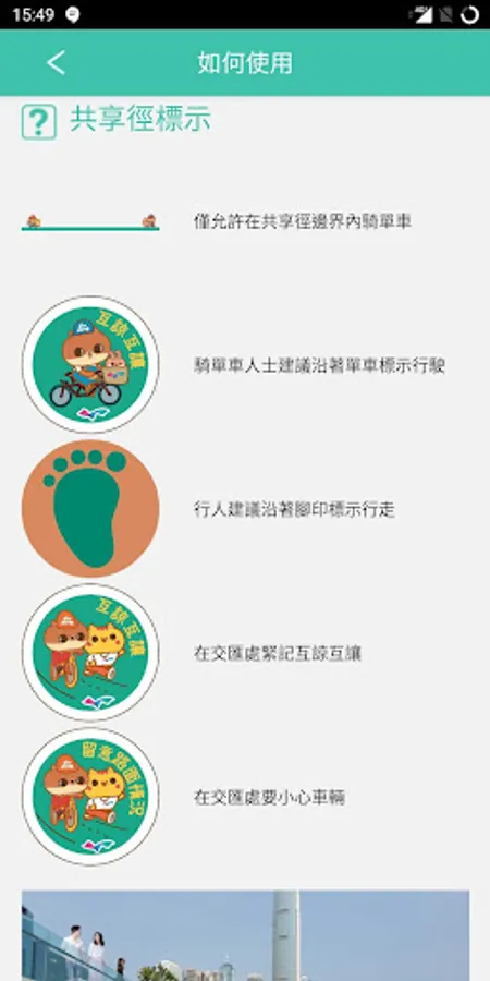 To facilitate the feasibility study, Civil Engineering and Development Department (CEDD) launched a 12-month Shared Path Implementation Project at the Promenade from Central Pier No. 10 to the west of Hong Kong Convention and Exhibition Centre. Public can experience the promenade with Shared Path and the Government can assess the behavior of adding cycling activities to the existing promenade to obtain experience for design, management and promotion. Consultants will review the feedback and data collected from the public and use them as reference for the future incremental implementation of Shared Path on promenades along the NHK.