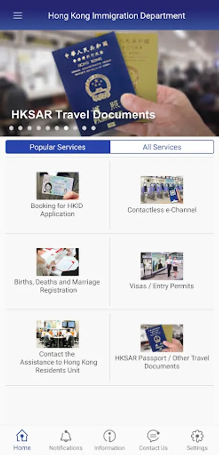 • Using Immigration Department Mobile Application, data transmission fees may be incurred for transmitting data through mobile devices. You are suggested keeping track of data usage from time to time.