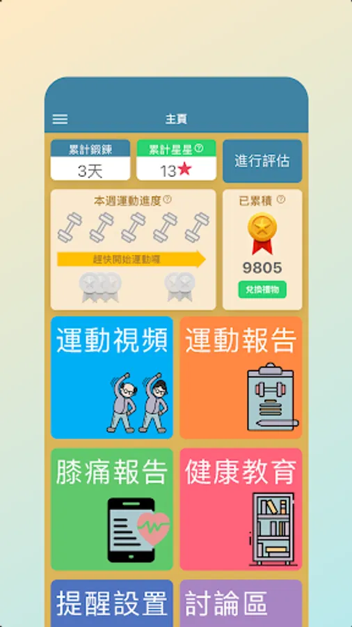 • Health education information (exercise teaching, weight management, healthy eating, joint protection, pain relief, mindfulness training)