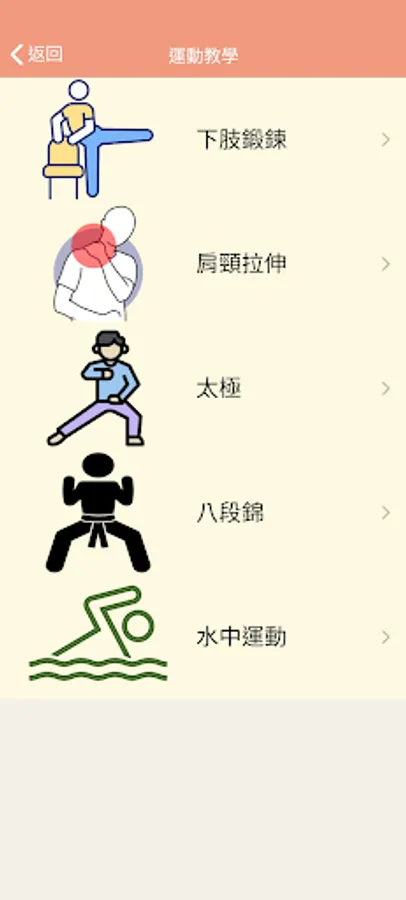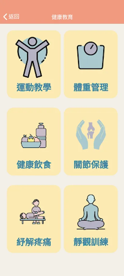 • Health education information (exercise teaching, weight management, healthy eating, joint protection, pain relief, mindfulness training)