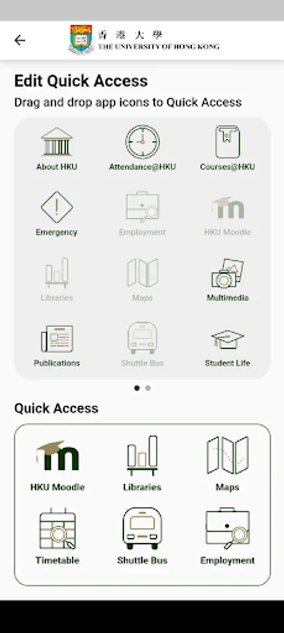 HKU Moodle – The centrally managed Learning Management System (LMS) in HKU. Users can use Moodle in HKU App to support their teaching and learning activities through different functions and interactive activities, including Assignments, News Forums, Discussion Forums, Choice, Feedback, Quiz, Wiki, and communicate among users.