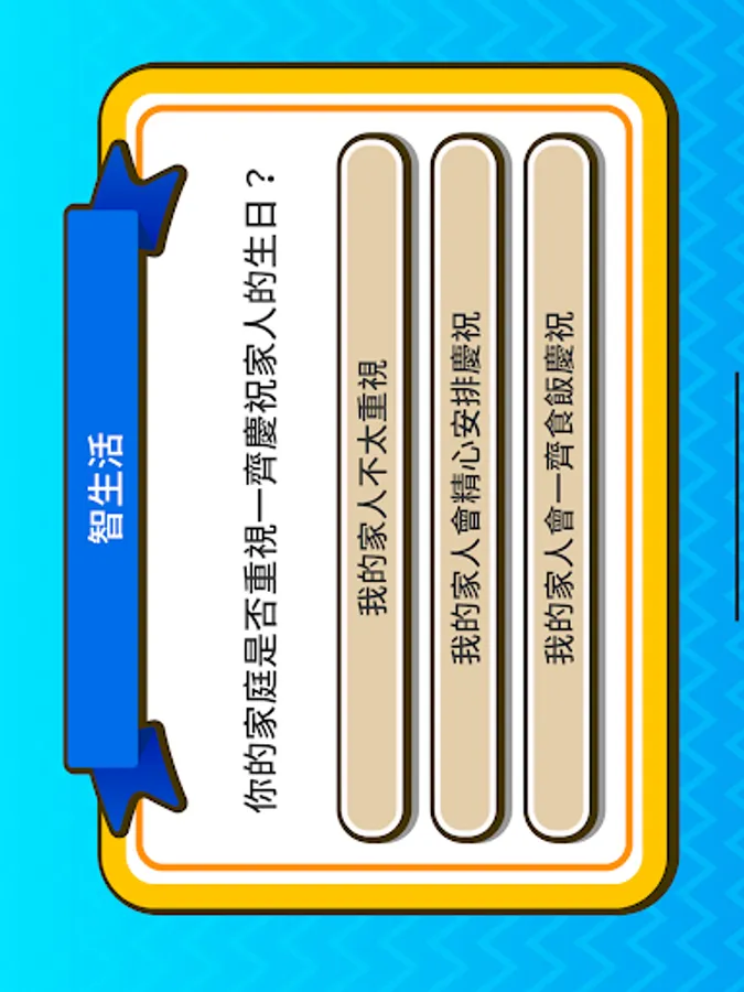 此遊戲程式為第一階段。桌面遊戲內容較適合有初小學生的家庭。 透過完成不同主題的挑戰,學懂怎去在不同領域試與家人好好相處,互相欣賞,這樣就可以一家人盡快尋回早前遺失的家庭照!