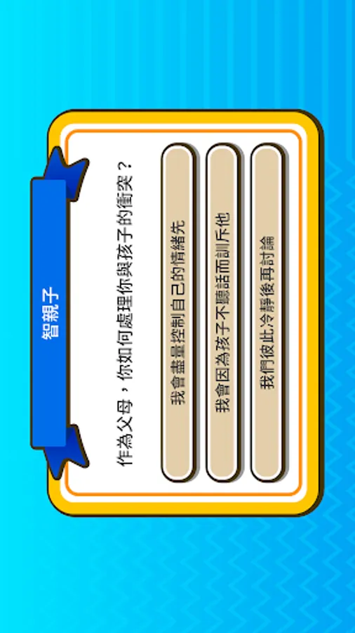 「智.家.樂」為一款綜合以家庭為主題的桌面遊戲。整個遊戲程式發展分為三個階段,每個階段會設計出一款符合該階段主題的手機應用程式,以完善整套程式發展。遊戲任務內容包含整個計劃的五個主題: (i) 智情緒、(ii) 智應對、(iii) 智生活、(iv) 智親子及 (v) 智溝通。遊戲人數為2 - 4人。
