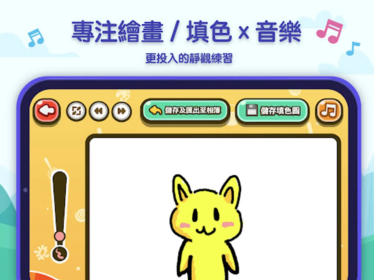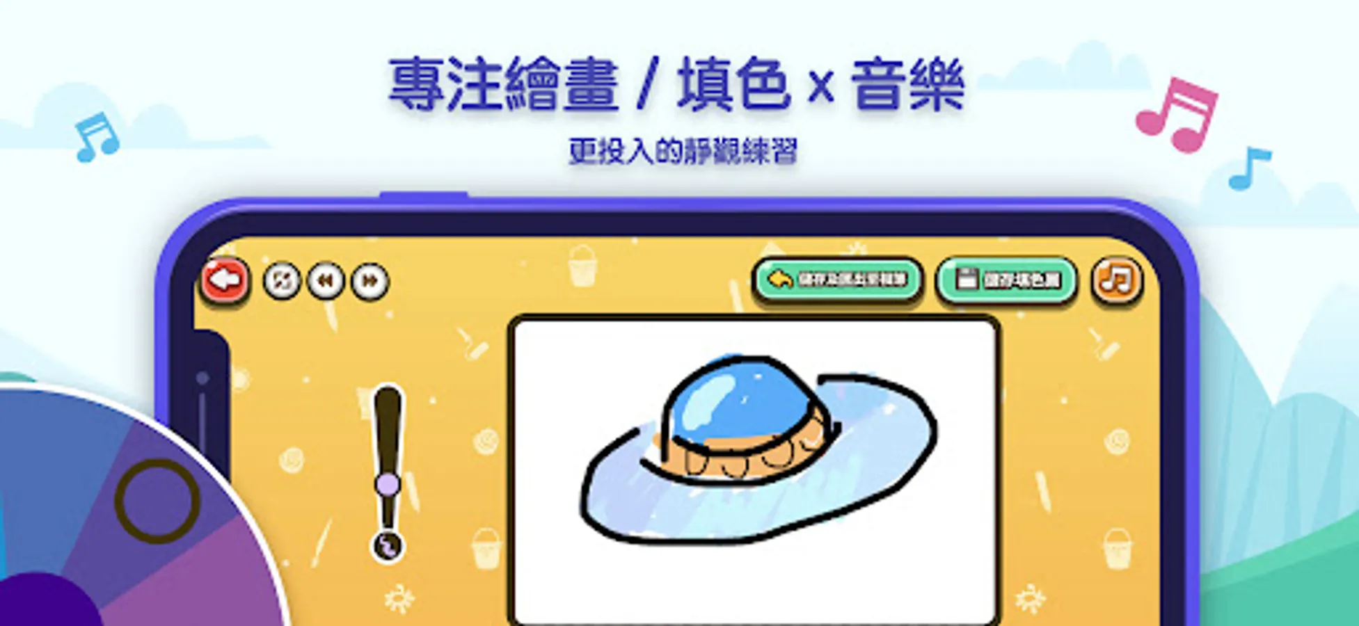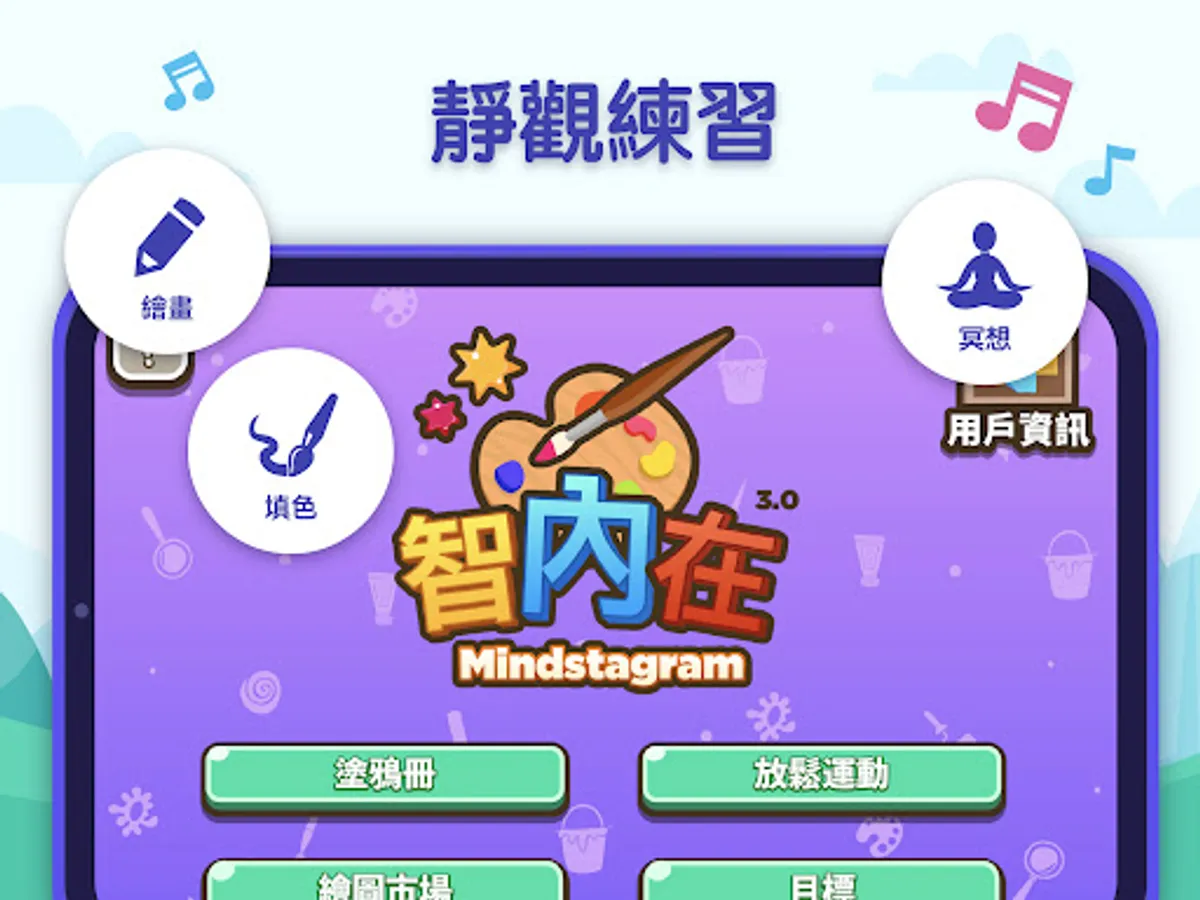 The first and second stages of the game program help users through the built-in drawing/coloring/music and image functions of the program, according to their individual needs, set up a suitable environment for different mindful drawing/ mindful coloring and meditation exercises . In order to encourage and facilitate users to share and download more paintings and continue to build the habit of quiet practice, the program includes (1) "Drawing Market" and (2) "Goal Setting". Through trial and continuous practice of mindfulness, users can learn and increase their awareness of themselves. Learning to get along with different emotions, thoughts and physical conditions will help effectively regulate their emotions and achieve the effect of "intelligently coping with" adversity.