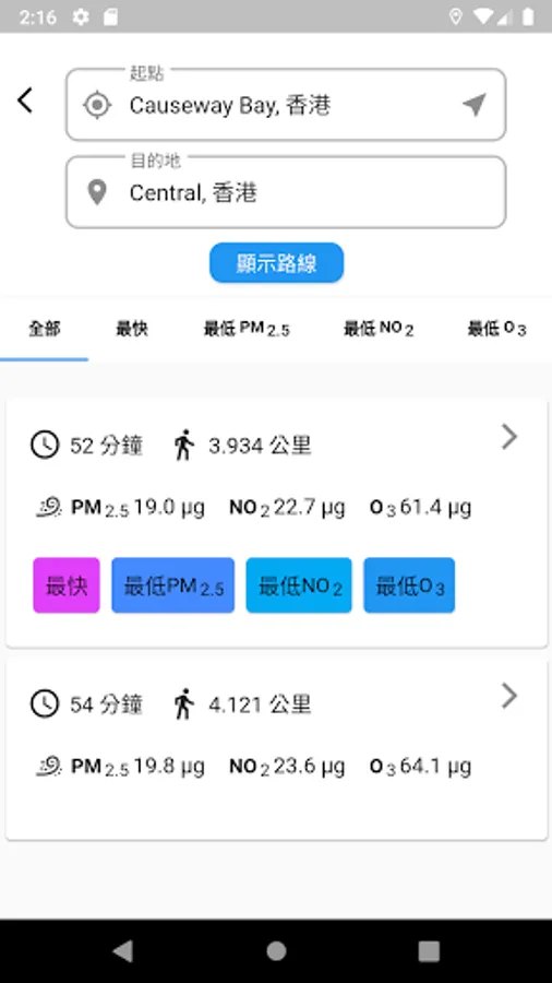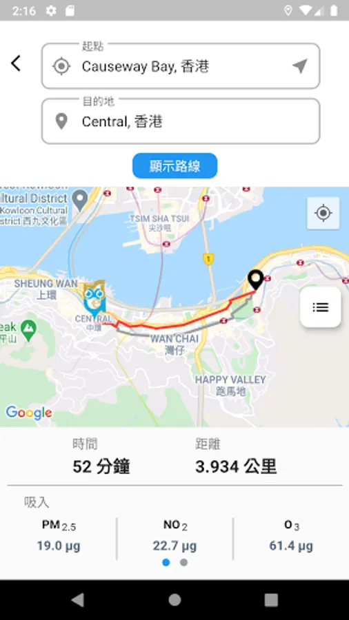UMeAir is a mobile application developed by HKU-Cambridge AI-Wise Research Platform, Department of Electrical and Electronic Engineering, the University of Hong Kong to allow public access to air pollutant levels in a geographically fine-grained manner. It also suggests alternative travel routes with expected levels of air pollution exposure.