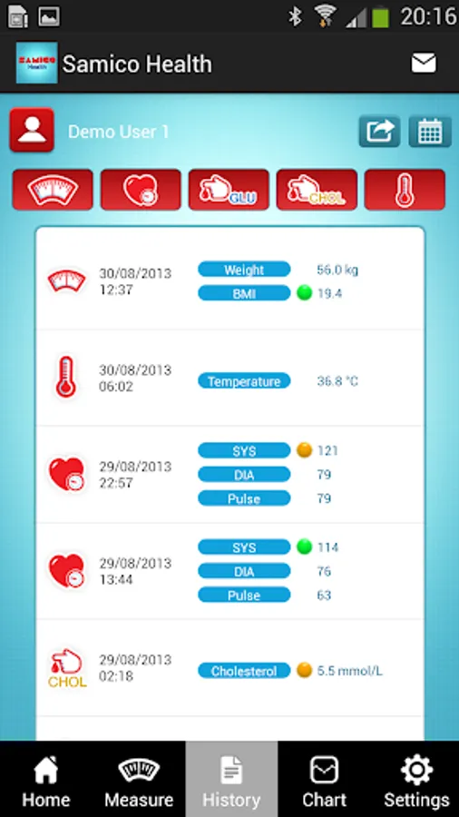 Samico Health App connects Samico Health products like Electronics Scale, Blood Pressure Monitor, Thermometer, Blood Glucose & Cholesterol Monitor and Oximeter to Bluetooth 4.0 enabled Android devices.