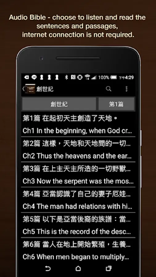 With both Chinese and English, free to switch the language in setting. Read and study the Catholic Bible every day, feel the spirit with God, share favorite sentences / passage anytime and anywhere.