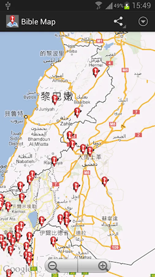 Bible Map shows all the locations that are mentioned in the Bible on the map. It also contains the relevant bible verses for your reference.