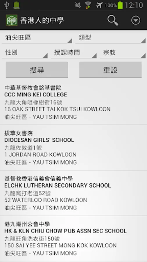 Hong Kong Secondary Schools contains details information of all secondary schools in HK. You can use the search function to find the ideal choice or use the filter function to filter out schools by district, religion, gender and other conditions.