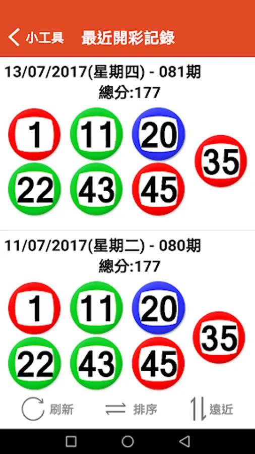 4. 最新100期開獎記錄,支持落球先後和由小到大排序