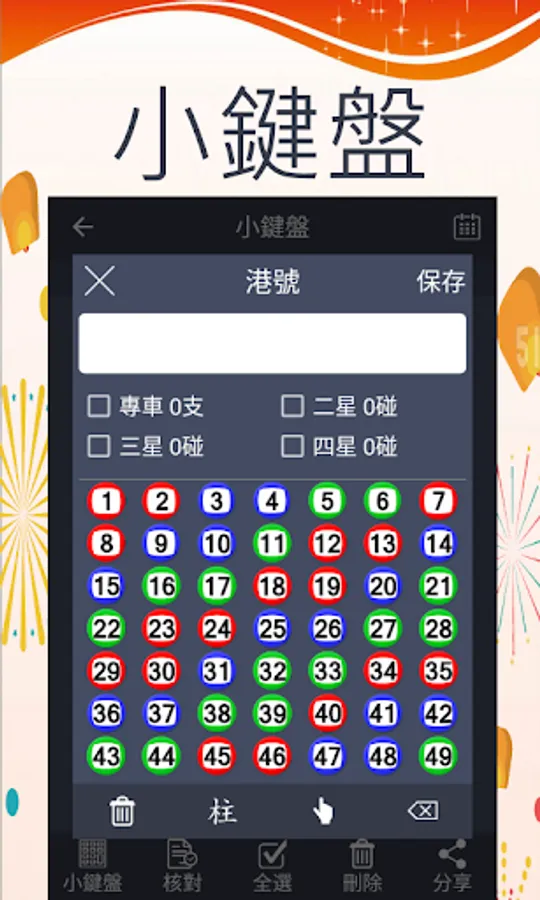 4. 小鍵盤,列出相隔開出期數統計,即時自動核對中獎結果