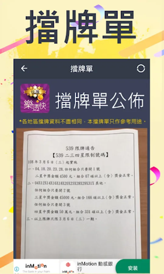 An Android application that provides lottery information related to "Taiwan Lotto Tickets" in real-time lottery.