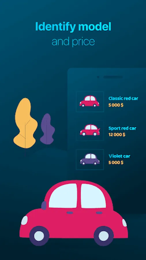 We have created artificial intelligence which uses your smartphone to identify the make and model of the car you have captured. As a bonus we will show how much that car costs.