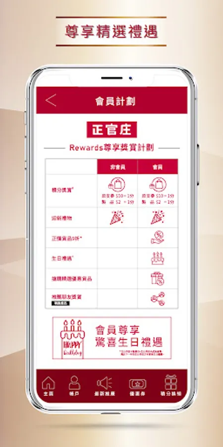 Download the Zhengguanzhuang Rewards App now to enjoy a variety of welcome gifts. Become a Zhengguanzhuang member# to enjoy exclusive discounts, birthday privileges, earn points to redeem gifts, and be the first to learn about the latest promotions and activities of Zhengguanzhuang.