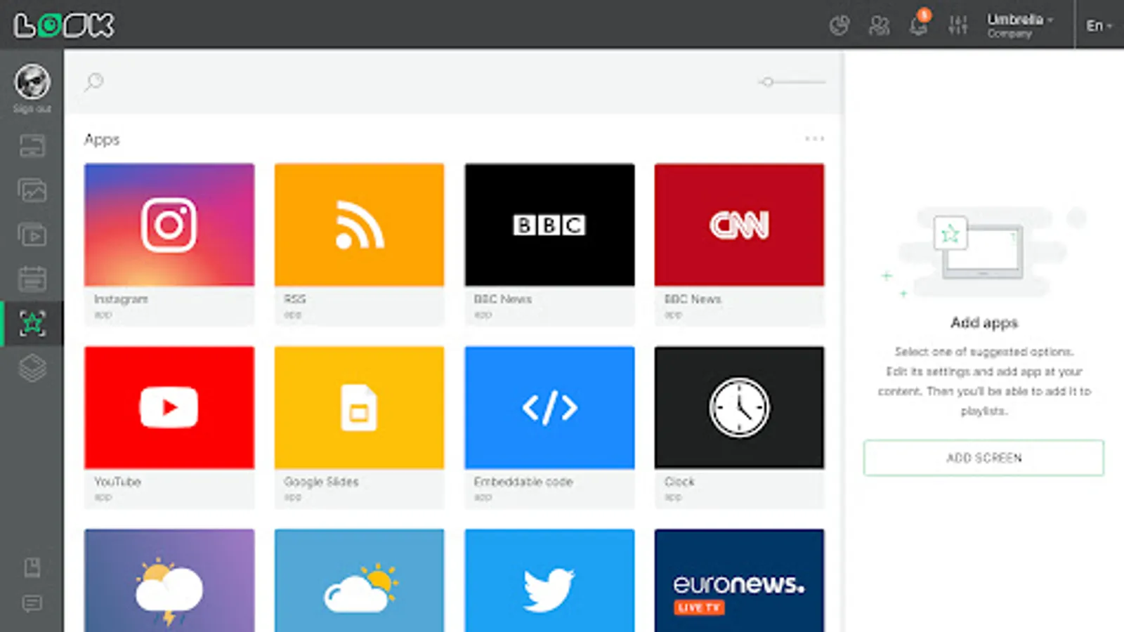 This is a special Android OS based application, which you can download onto your digital screen at any time. Just launch the app and it will automatically transform your screen into a digital signage powered by Look Digital Signage Software.