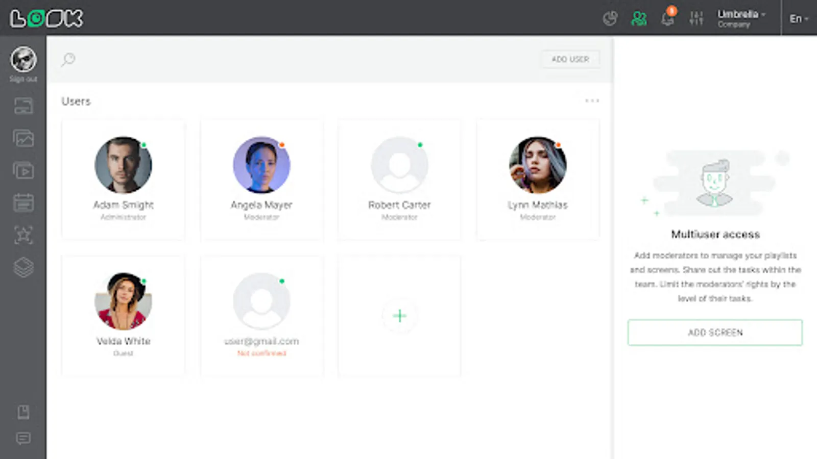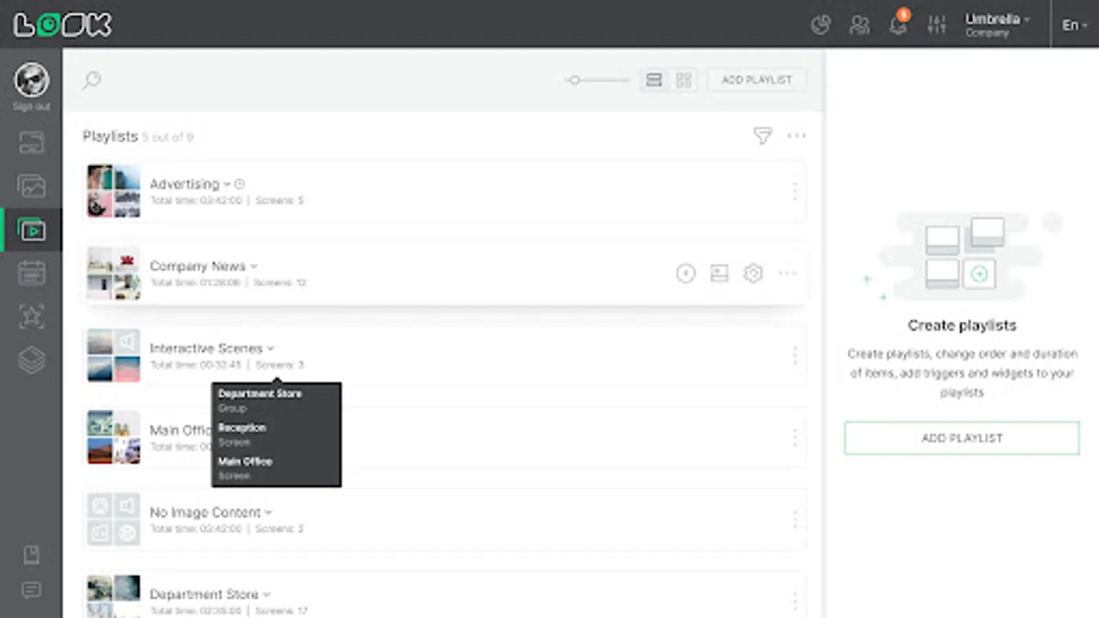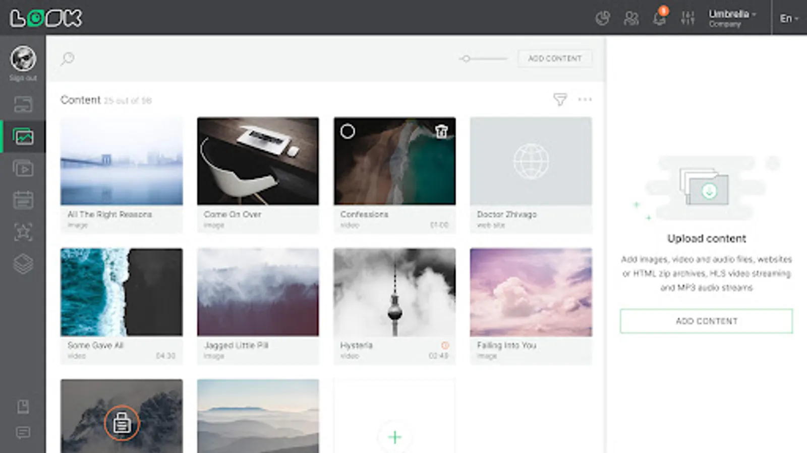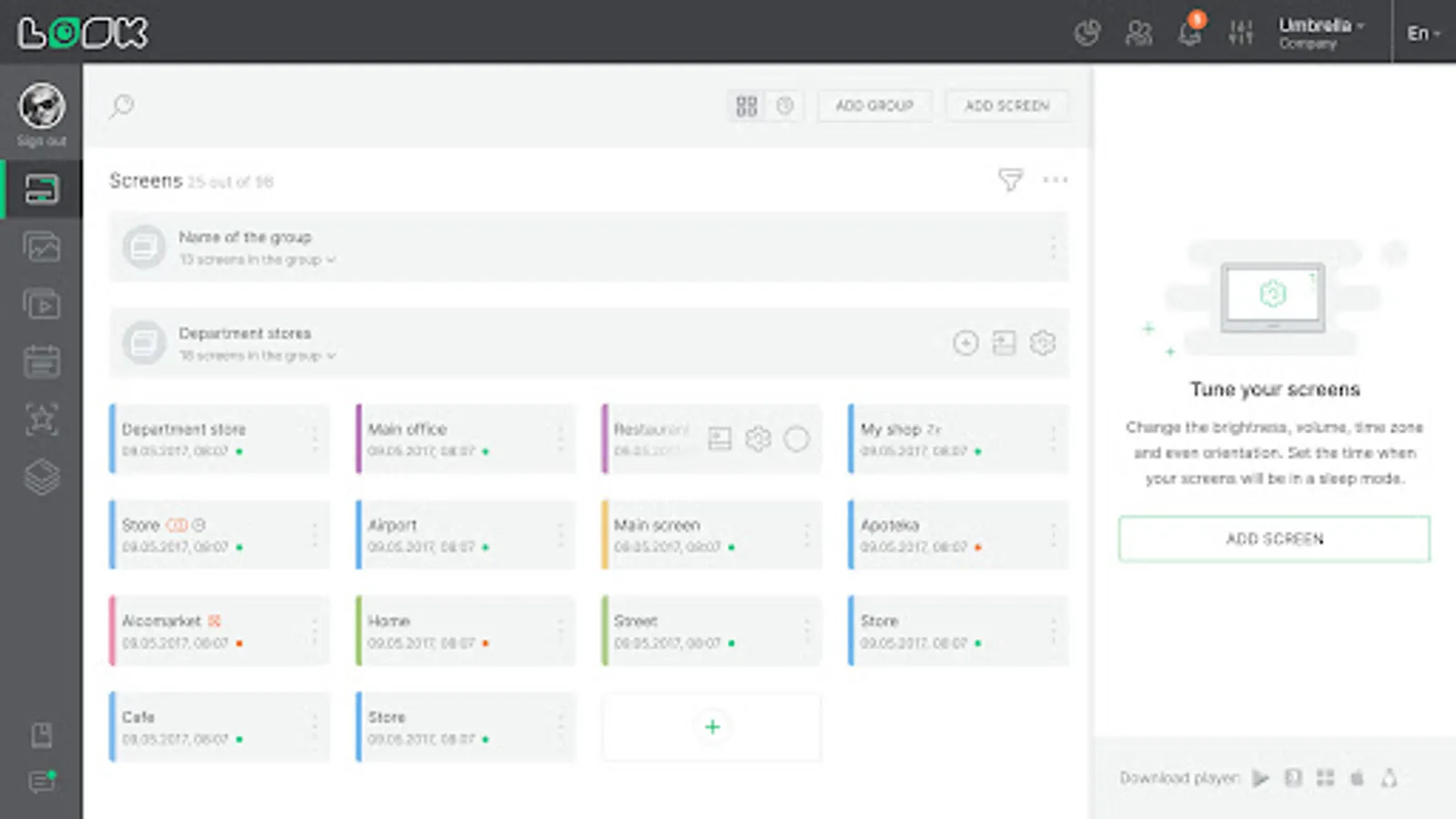 Manage various types of content, create the playlists, group your screens and remotely change its settings using simple web-based LOOK Content Manager and secure cloud-based server powered by Amazon. Deploy your own digital signage network fast, simple, with minimal cost and maximum efficiency.