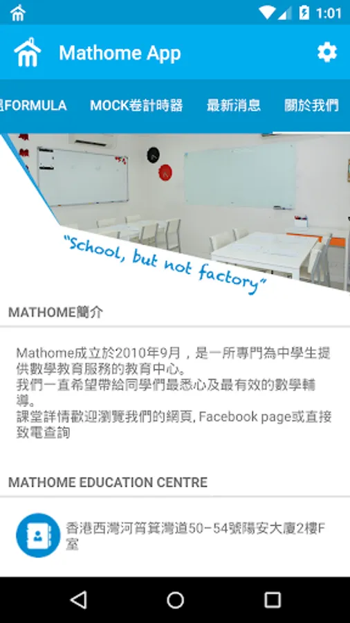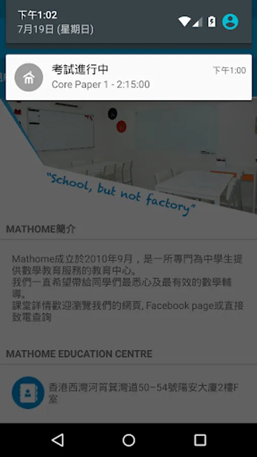 The Mathome App is a tool for students to revise their lessons. Students can also receive messages broadcast by Mathome Education Centre via this application.