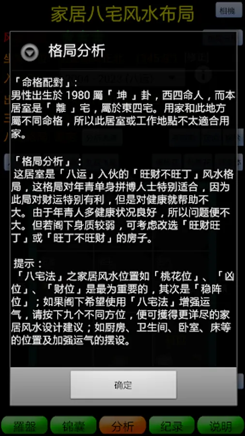 此软件建议的风水布局只作参考,内容及程序都可能有所不足,惟彼等并不担保这软件产生的资料之准确性及可靠性,且概不会就因有关资料之任何不确或遗漏而引致之任何损失或损害承担任何责任。大众亦应明白玄学命理并非精密科学,命运总要靠自己掌握。