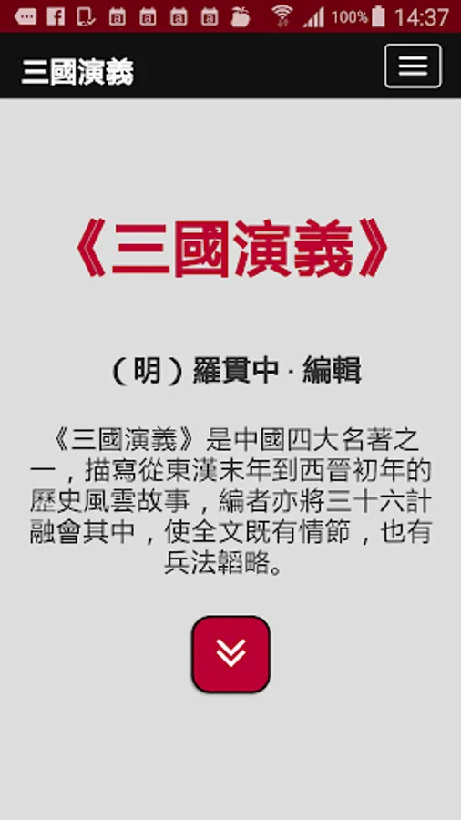 《三國演義》是中國四大名著之一,亦是第一部長篇章回體歷史演義小說,描寫從東漢末年到西晉初年的歷史風雲故事,編者亦將三十六計融會其中,使全文既有情節,也有兵法韜略。