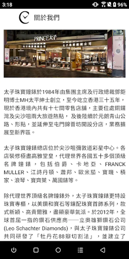 With its flagship store located in Prestige Tower in Tsimshatsui, Prince Jewellery & Watch is renowned for carrying over 50 global high-end watch brands, such as Breguet, Carl F. Bucherer, Cartier, Chopard, FRANCK MULLER, Omega, I.W.C., Jaeger-LeCoultre, Longines, Piaget, Vacheron Constantin, etc.