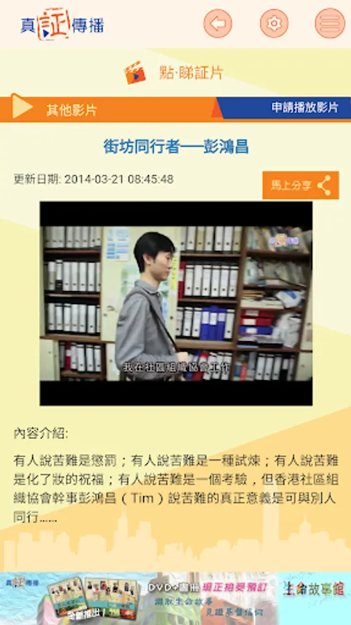 4. 遇見合適的影片可以快捷地申請在聚會中播放;