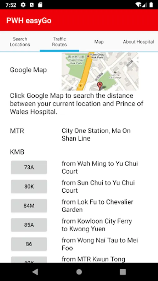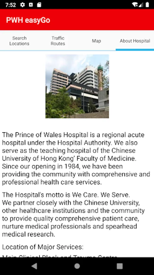 “PWH easyGo” is upgraded to “NTEC easyGo”. It is to help visitors and patients searching for the route of the buildings and facilities of the NTEC hospital(PWH, AHNH, NDH, TPH, BBH, SCH, SH) through mobile devices.