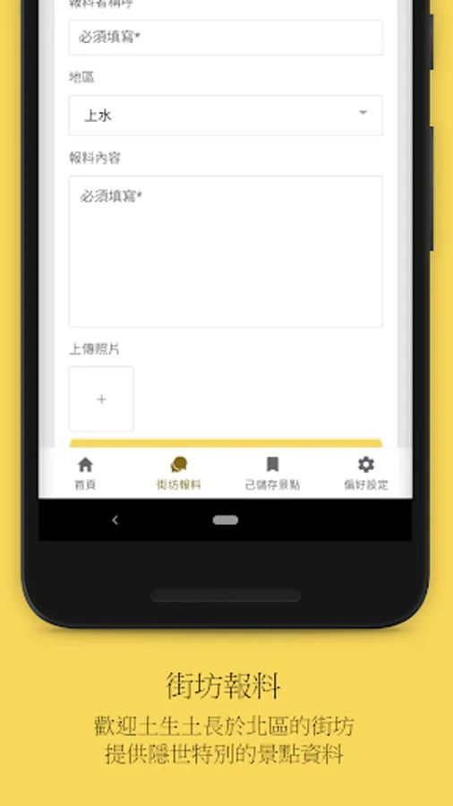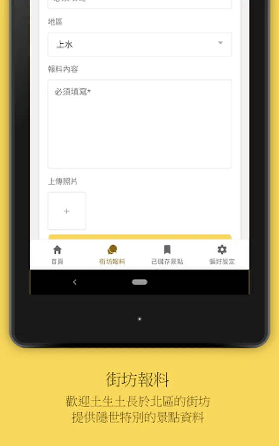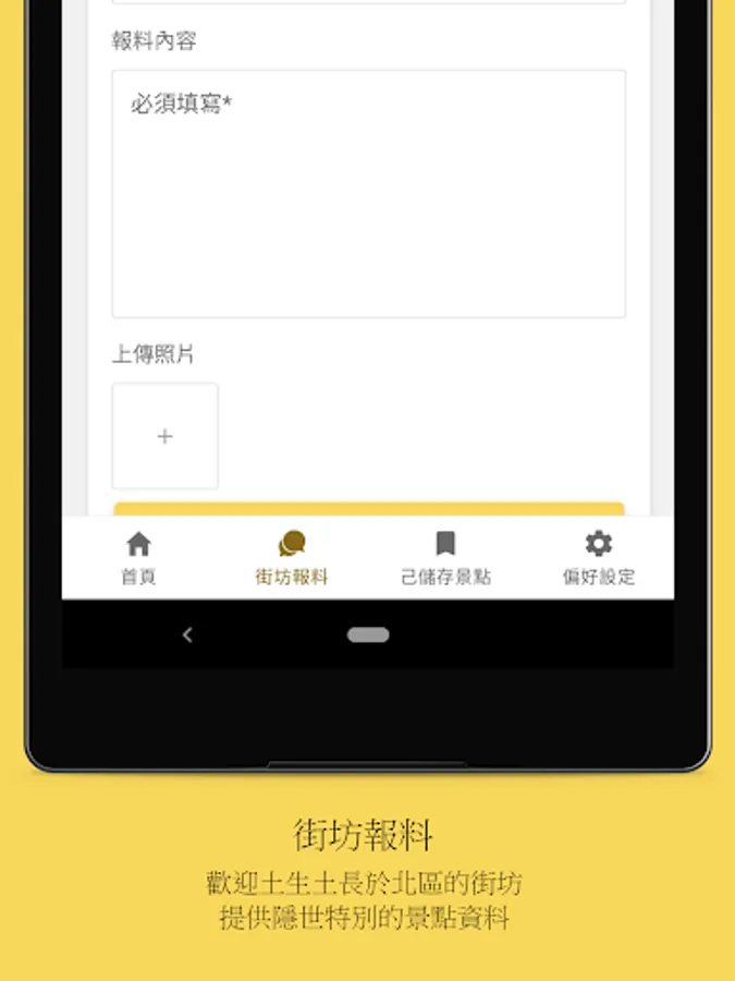 「街坊報料」:歡迎土生土長於北區的街坊提供隱世特別的景點資料,豐富路線版圖