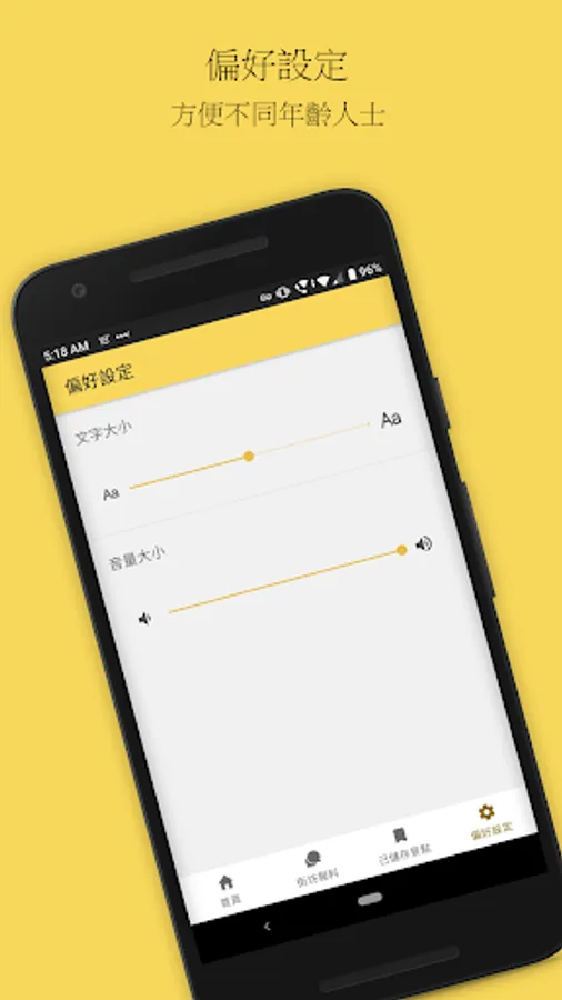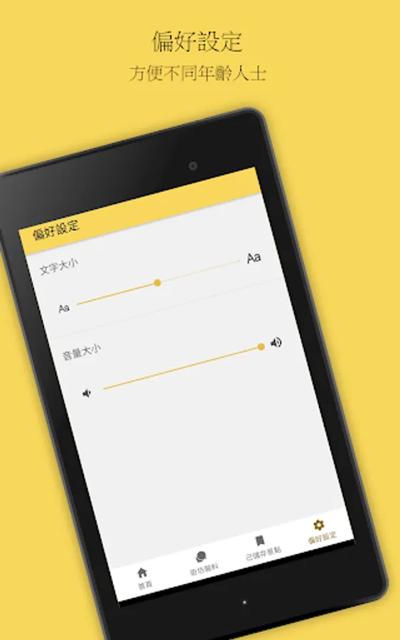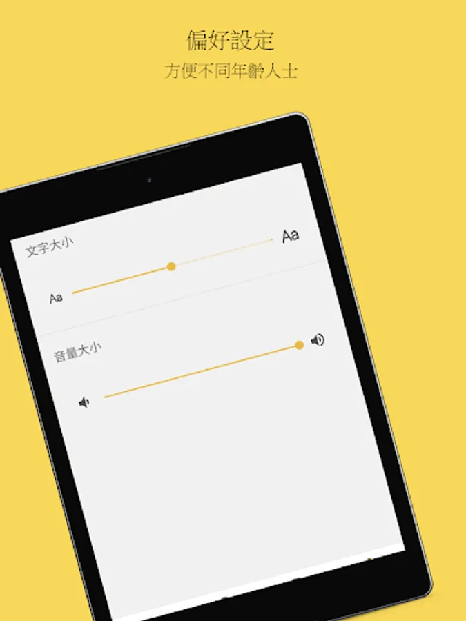 「偏好設定」:調較文字及音量大小,以方便不同年齡人士