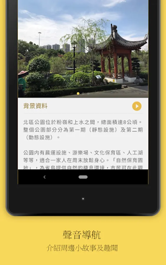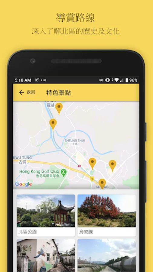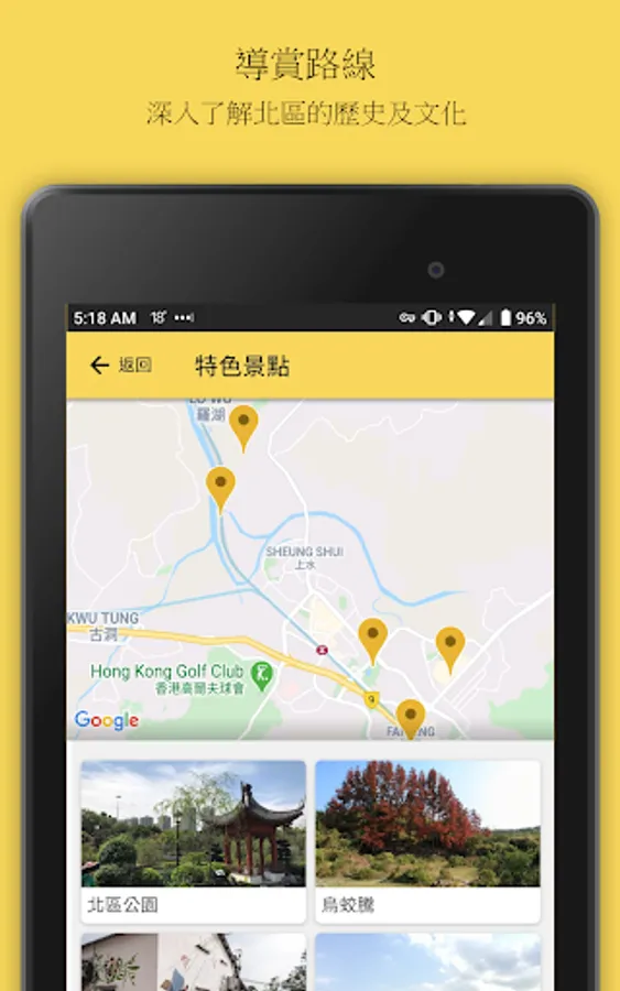 「特色景點」:路線以外的景點,瀏覽背景資料、特色、交通資訊,更有導賞員聲音導航