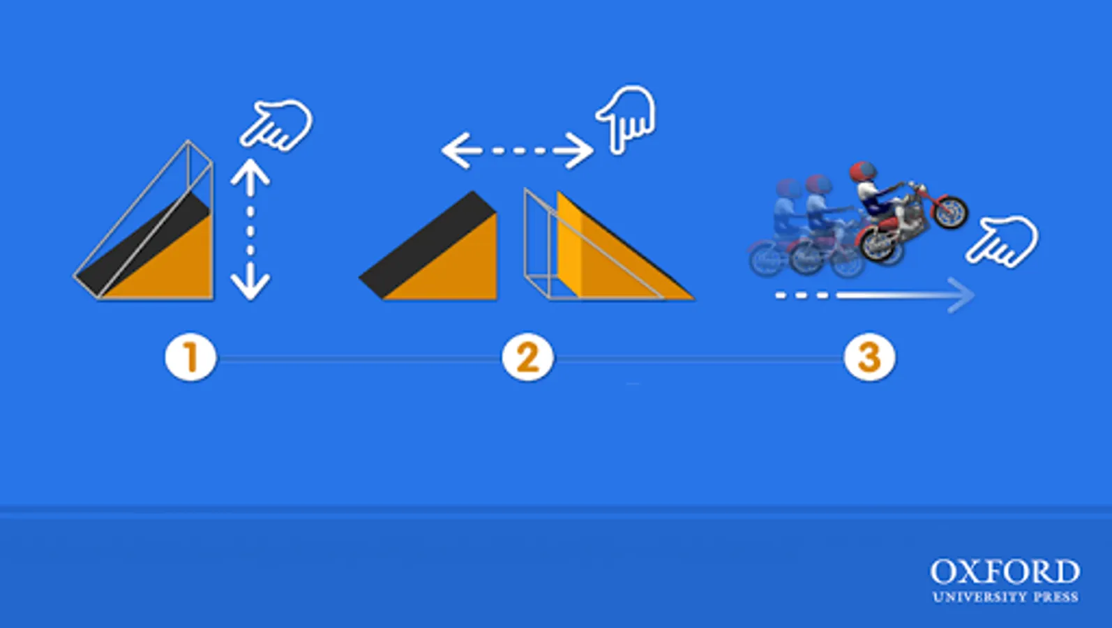 An AR showing the projectile motion of a motorcycle jumping across two platforms. The angle of the platforms ,the separation between the platforms and the initial speed of the motorcycle are adjustable.