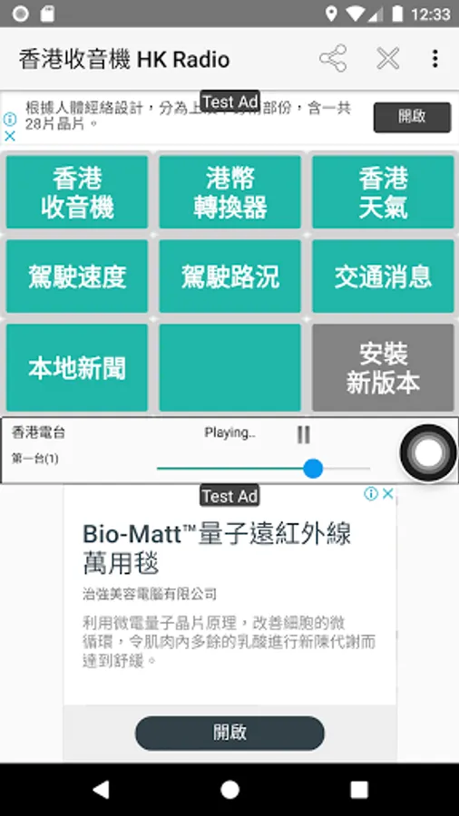 Including all Hong Kong Radio's FM and radio stations, it also provides a lot of convenient information such as Hong Kong dollar currency exchange rate conversion calculator, conversion of Hong Kong dollar (HKD), Renminbi (CNY), Hong Kong weather, driving speed, driving road conditions, traffic news , NWFB, Citybus, Bus Arrival Time, Mark Six Lottery, Hong Kong Race Schedule