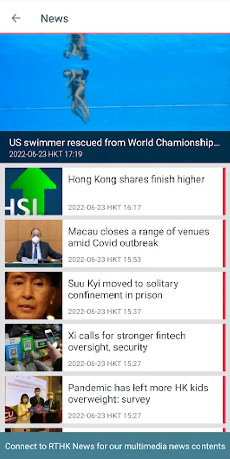 2) Latest News – put your finger on the pulse of what's happening around the world by RTHK latest news (text and photo). Connect to “RTHK News” for our multimedia news contents.