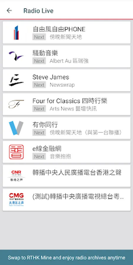 3) Radio Live – provides 8 RTHK radio live. In this section, you could swap to “RTHK Radio” and enjoy exclusive videos and radio archives anytime!