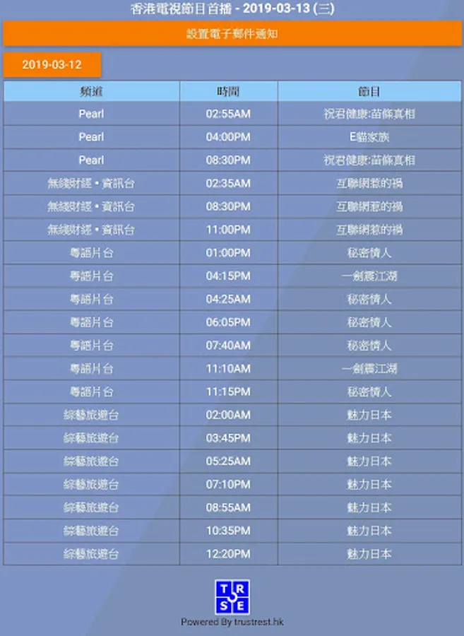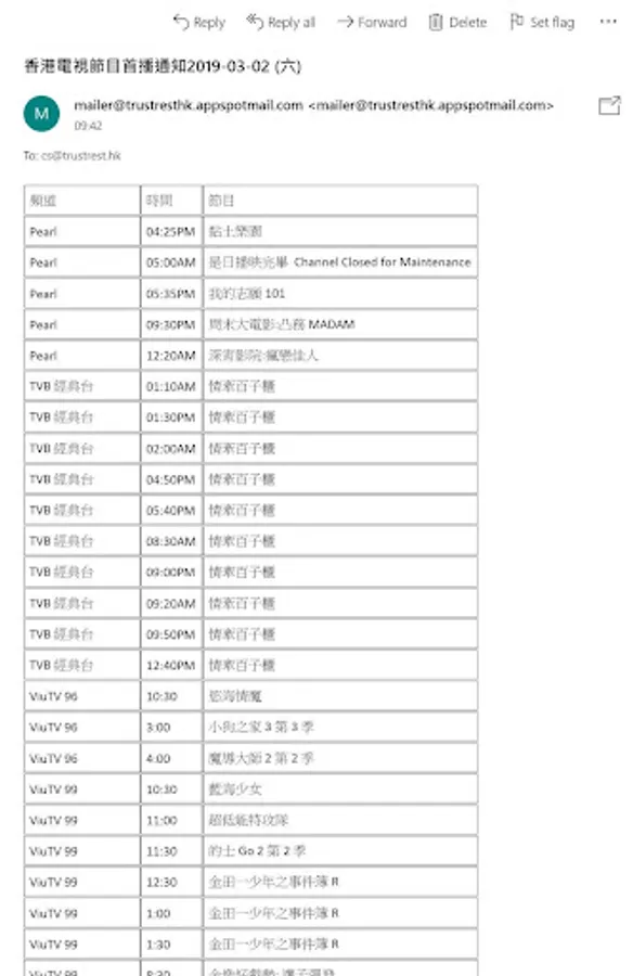 Hong Kong TV Program First/Replay Broadcast Notification