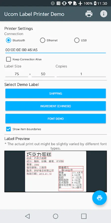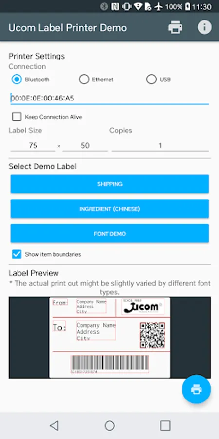Ucom Label Printer Demo is a sample application for Android devices connecting Ucom Label Printer.
