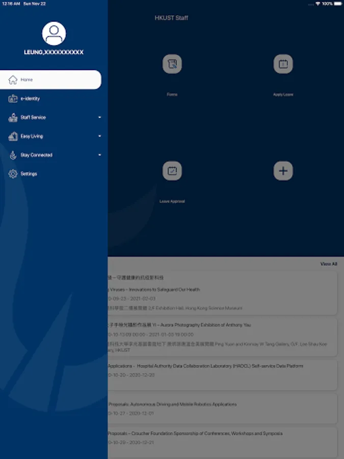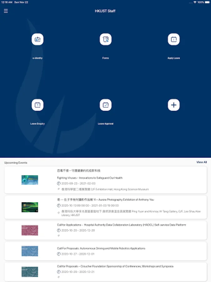 HKUST Staff is an Apps to help Back Office Staff to improve the administration work more efficiently. It gives you mobile access to some administrative functions (e.g. Expense receipt upload etc.) and easy link reference to other useful Apps for UST staff members.