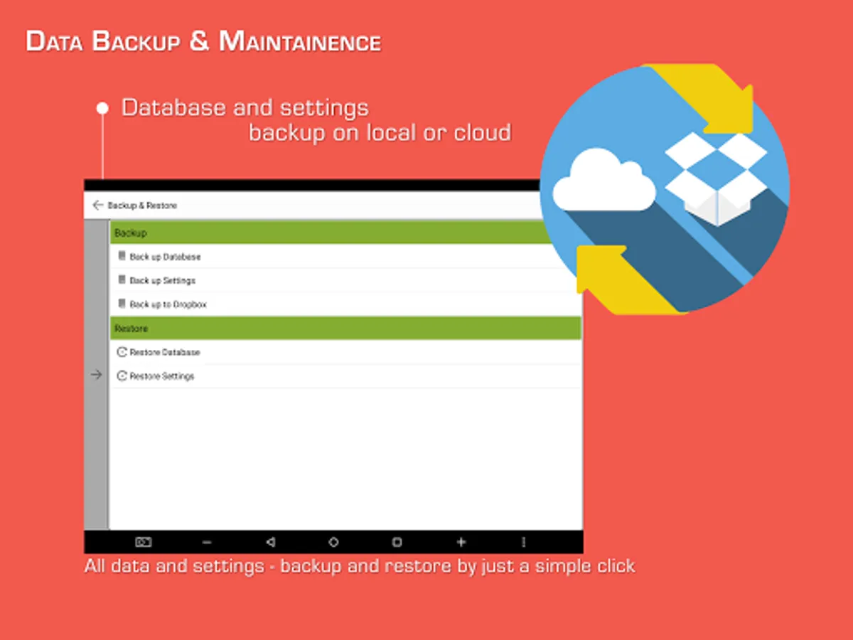 • Allow auto backup to cloud on the first launch on each day, or backup and send through email when day close