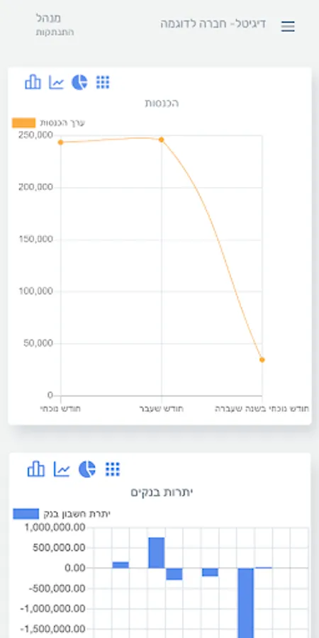 HMobile is a Hatshbat application that presents graphical reports based on data from companies managed by Hershbat ERP software.