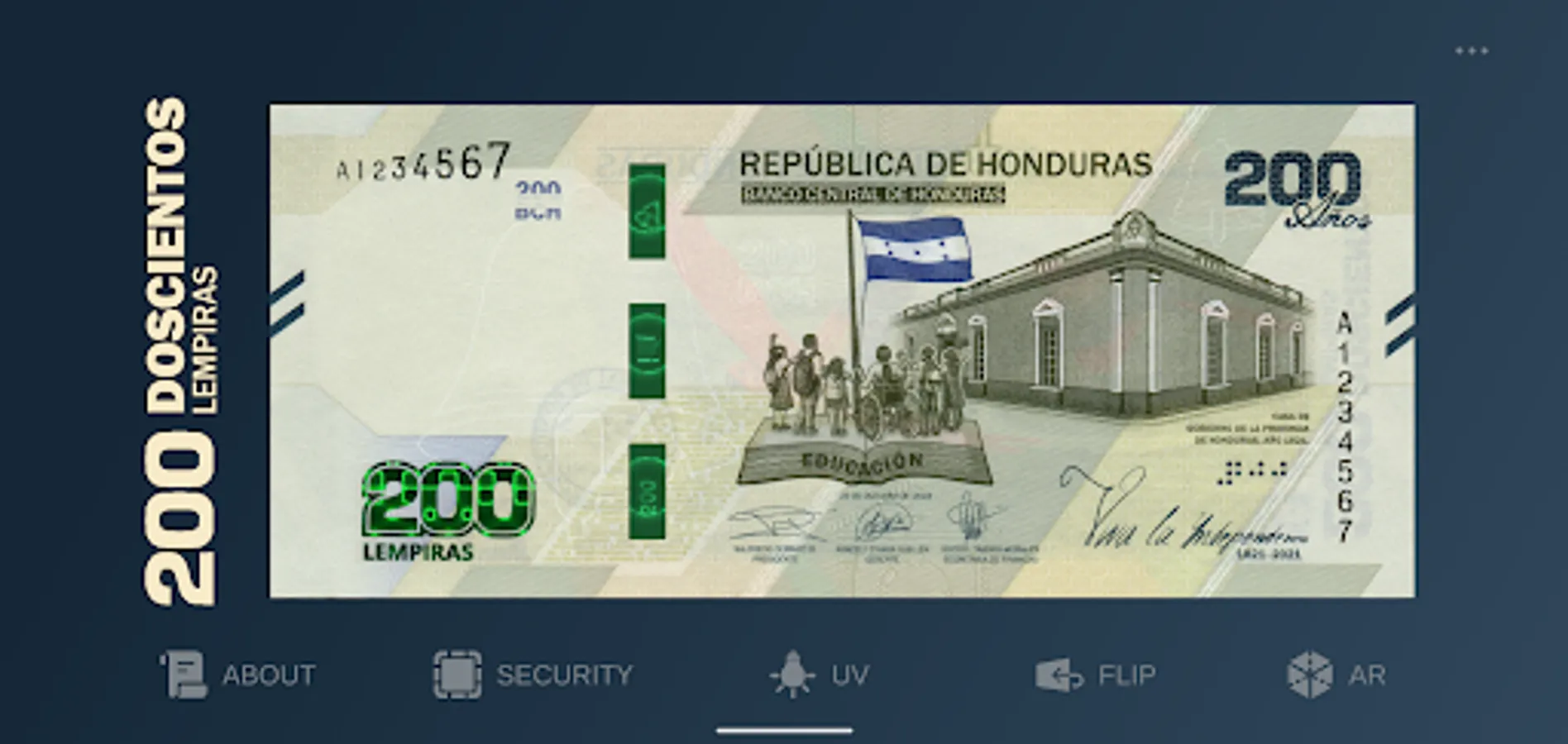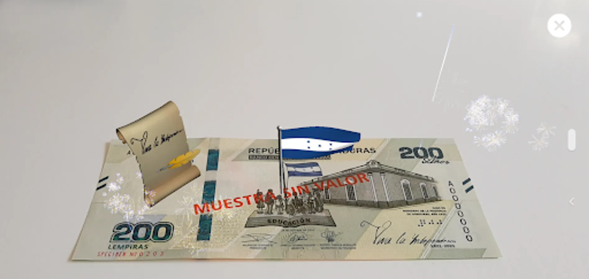 By using Augmented Reality the user of "BCH Lempiras" can enjoy a 3D experience after scanning the front or the reverse side of the new 200 Lempiras banknote.
