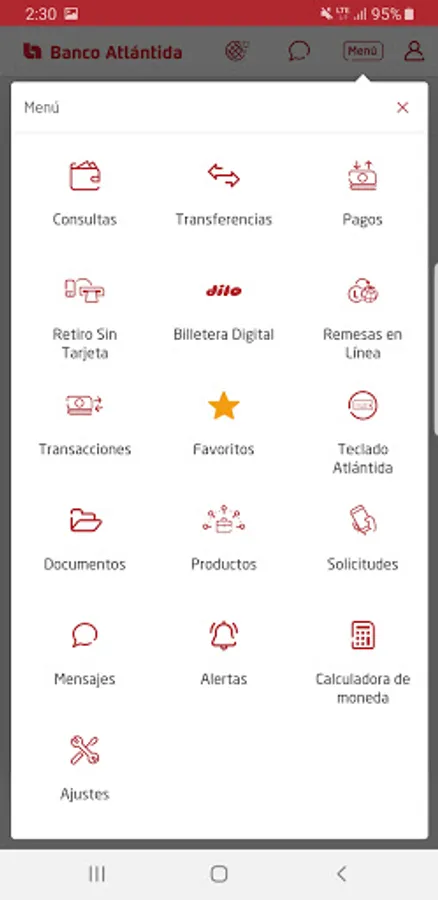 To enter Atlántida Móvil, use your access data to Atlántida Online.