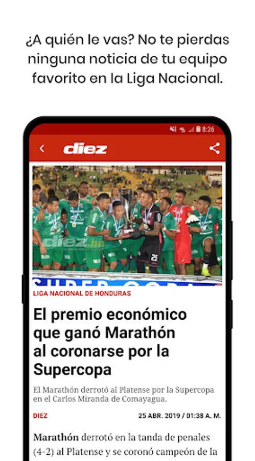 Let no one be more aware of sports than you! Download the new Diario Diez app and be the first to know the news of the National League, Honduras National Team, legionnaires, international football, all the results of your favorite team instantly and much more.