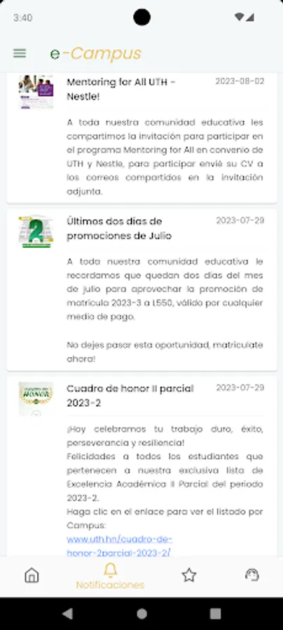 A new version with many more functions, where you can carry out all the transactions you have at the university, in addition to receiving notifications with promotions, knowing when a professor updated the notes and managing the cards to make your tuition and monthly payments.