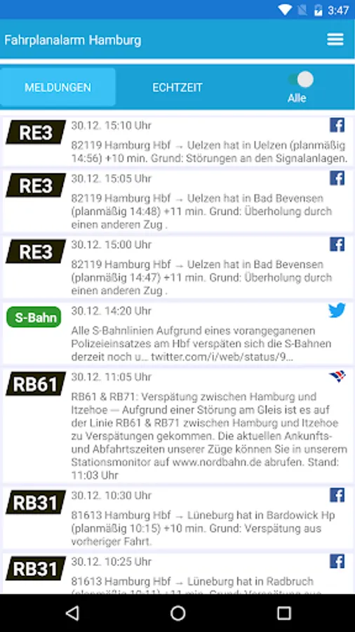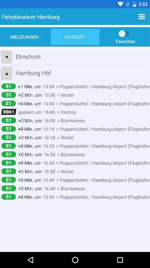 Schedule alarm Hamburg informed of push messages and adapted to the user survey of delays in public transport (public transport) in Hamburg. This includes filtering by lines and the selection of the sources of information as well as real time data by the operator.