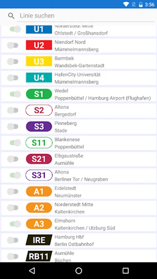 The app delivers interference from the entire HVV region and z.T. adjacent areas. This includes e.g. Elmshorn, Pinneberg, Norderstedt, Henstedt-Ulzburg, Kaltenkirchen, Bad Segeberg, Bad Oldesloe, Ratzeburg, Mölln, Büchen, Aumühle, Dannenberg, Luneburg, Buchholz, Buxtehude, Stade, Cuxhaven and Wedel.