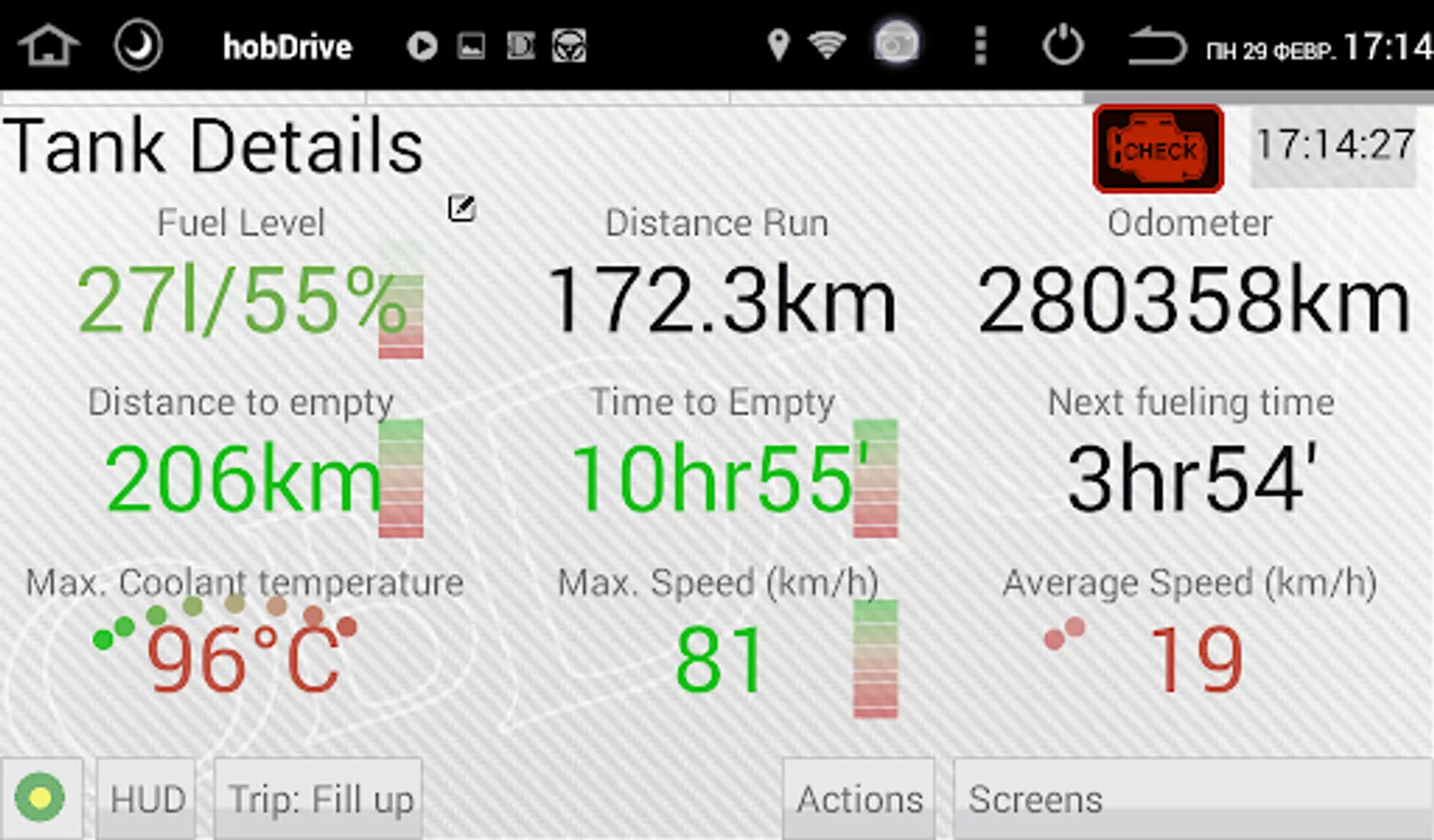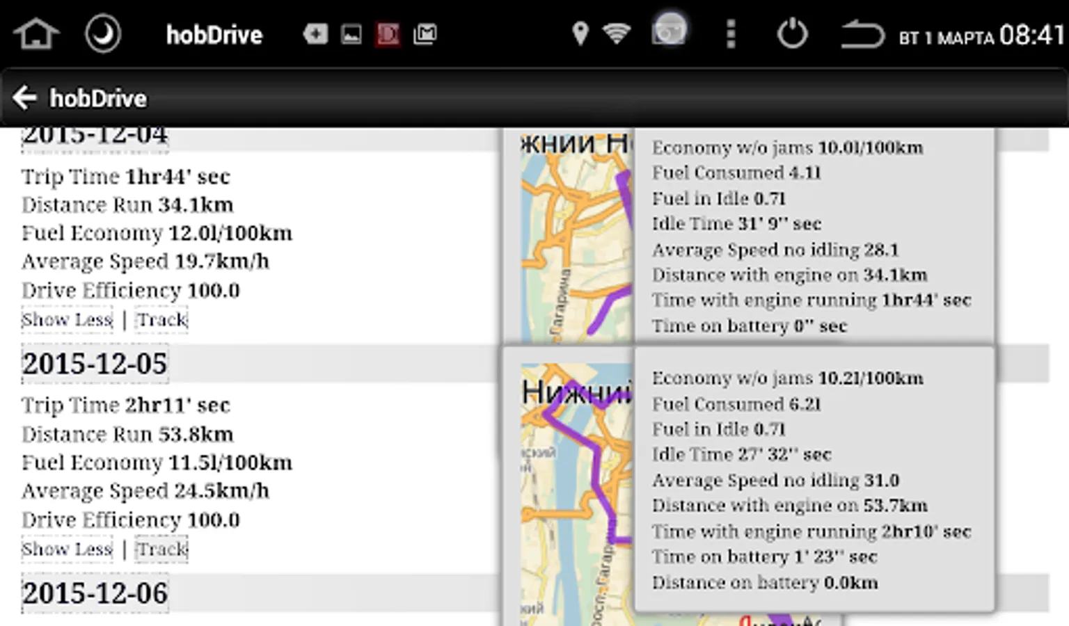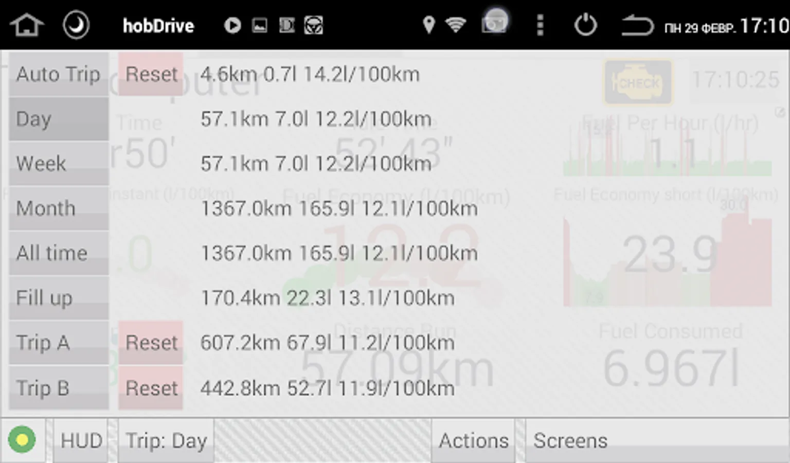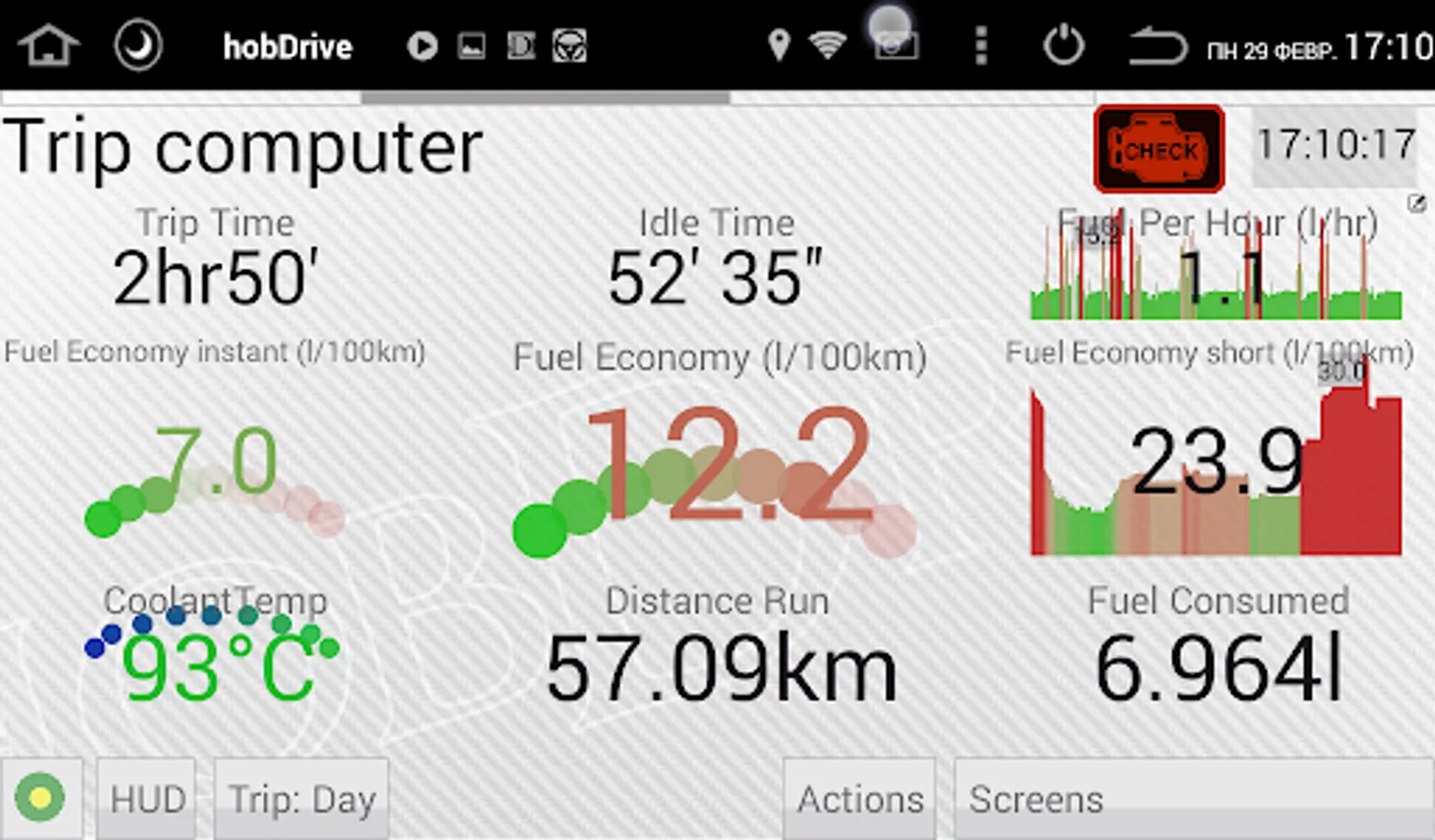 HobDrive uses your ELM327 vehicle adapter and GPS sensor to calculate and aggregate trip information.