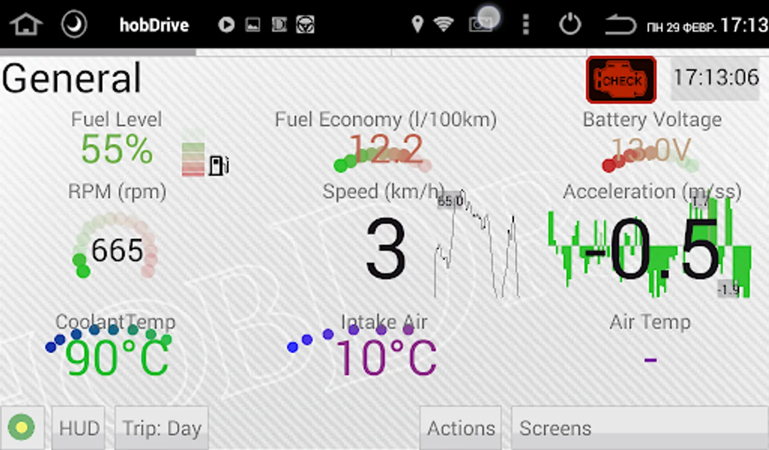 HobDrive uses your ELM327 vehicle adapter and GPS sensor to calculate and aggregate trip information.