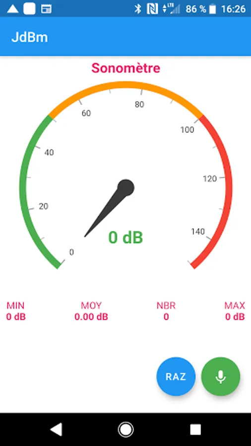 The application gives the measurement in decibels. It also makes it possible to have the minimum, the maximum and the average sound over a given time.