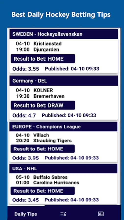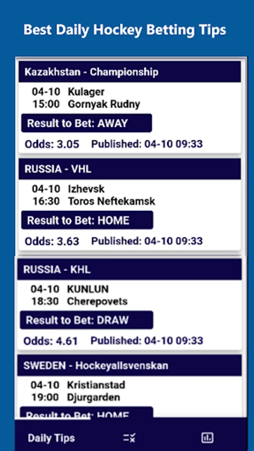 ★ Best Daily Ice Hockey Betting tips and predictions for Daily matches