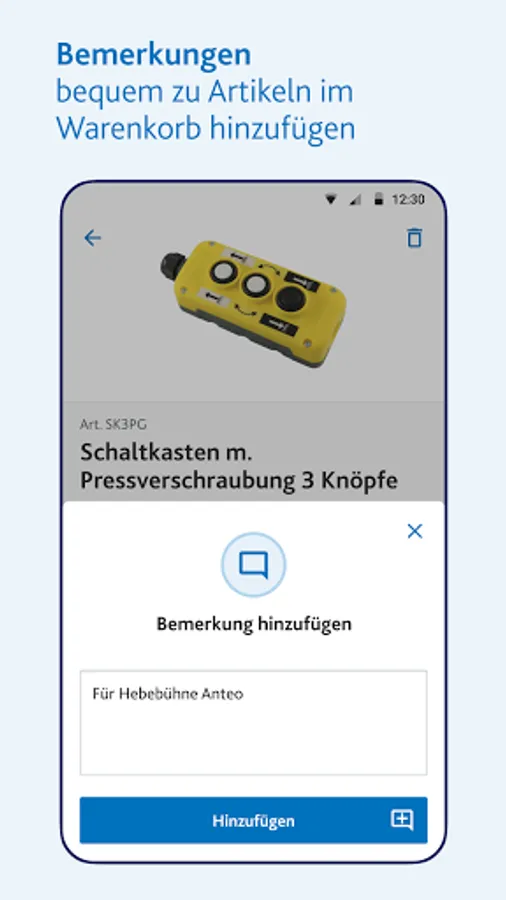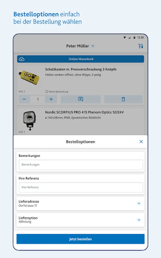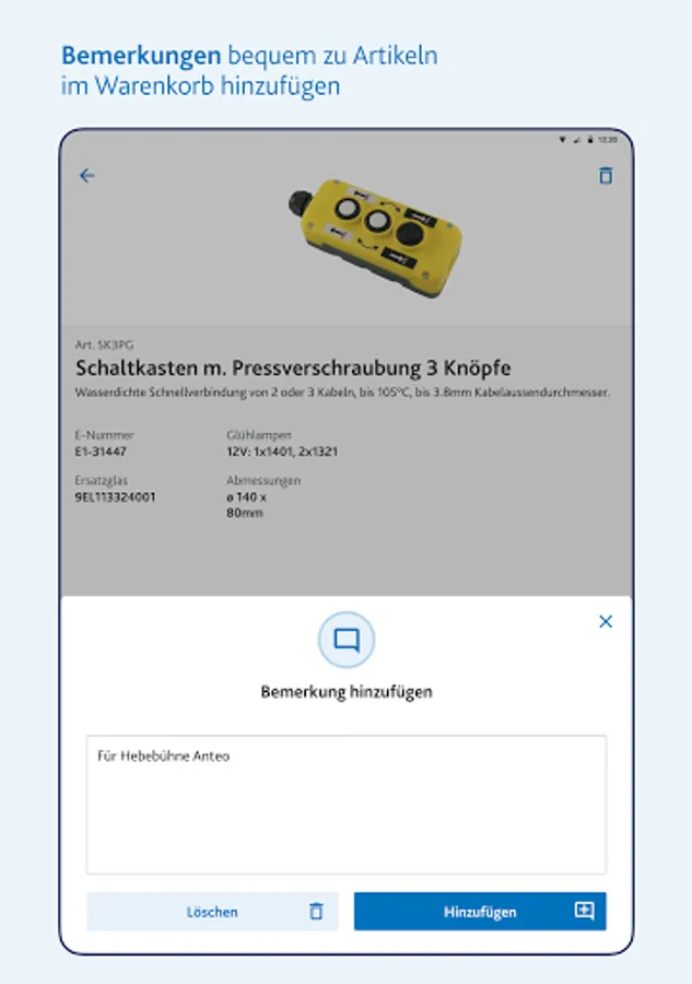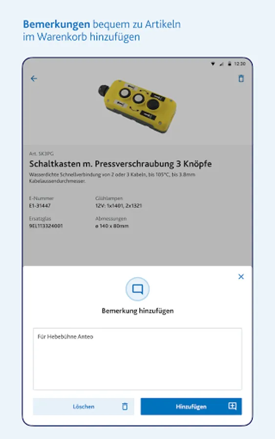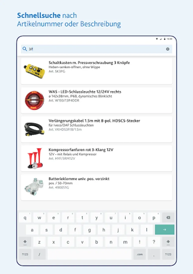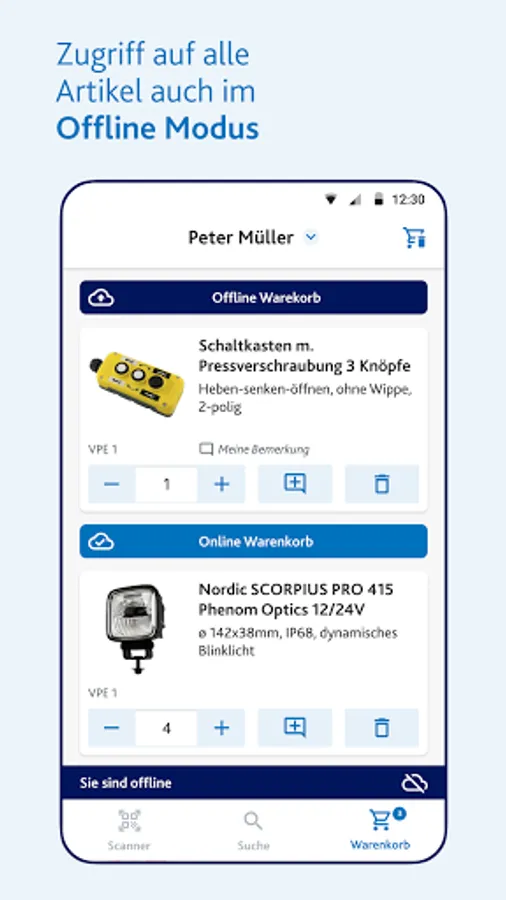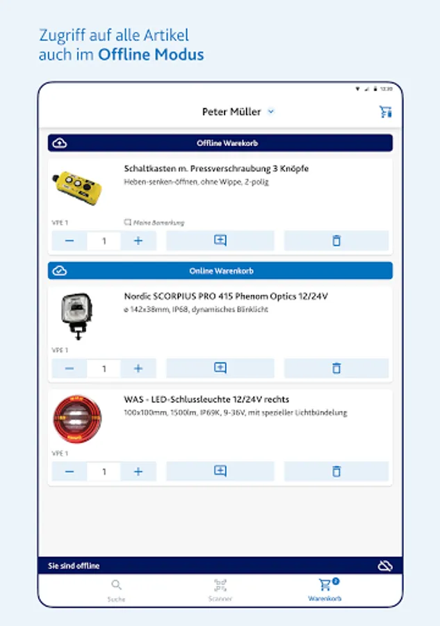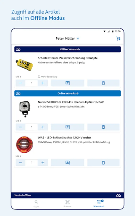 • All articles including pictures are also available offline. So you can put the desired items in the shopping cart even in the basement or on a remote construction site