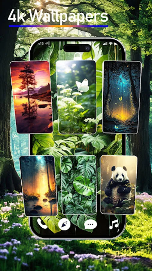 Rainforest live wallpapers 4K app comes with a variety of nature, animals, sunrise, forest flowers, mushrooms, waterfall, mystical forest wallpapers collection.